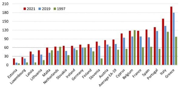 Many countries are well above that 60% considered a sustainable level of public debt given other parameters which, at the time of the Maastricht Treaty, reflected realistic assumptions.